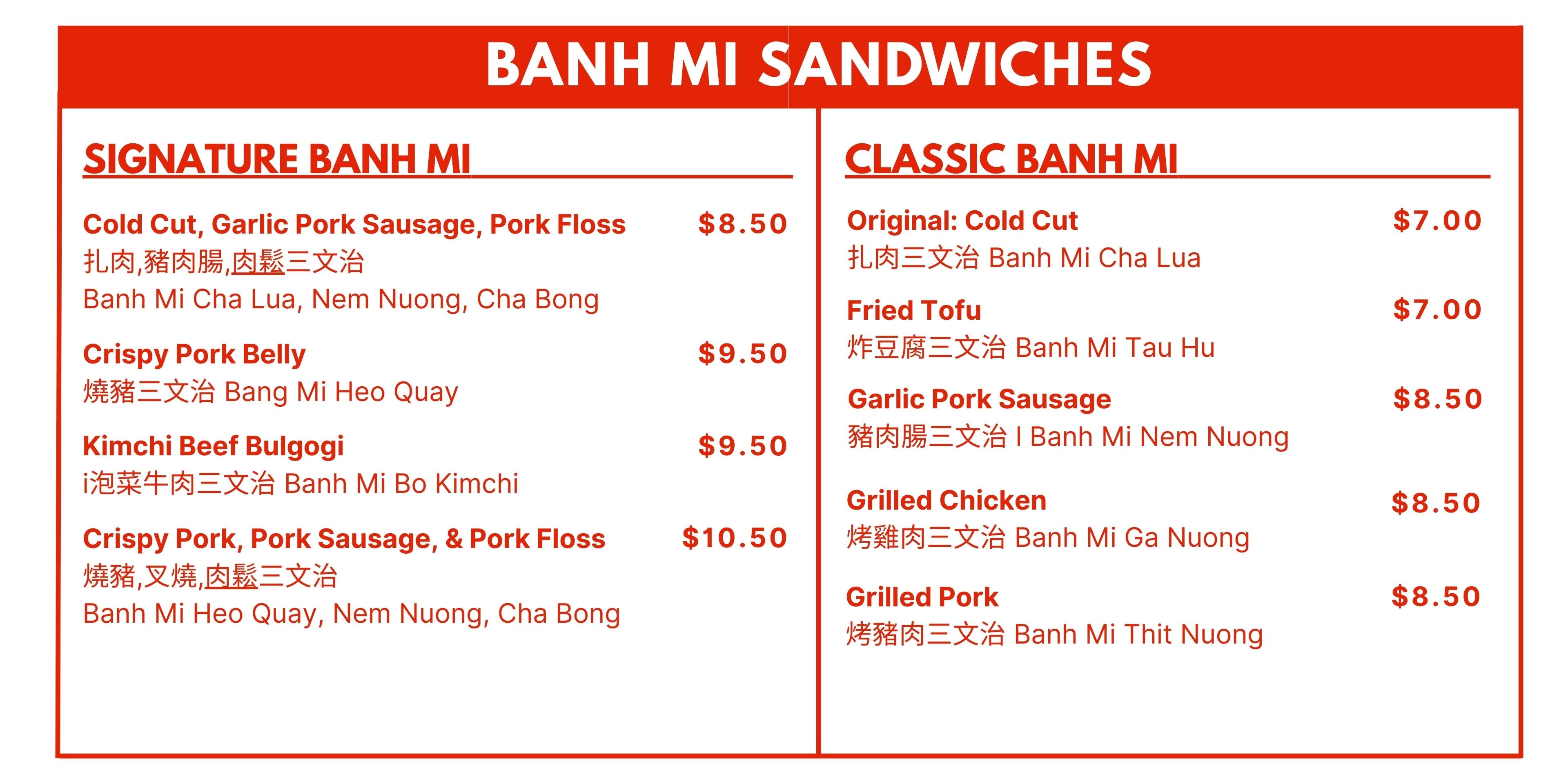 Fresh banh mi baguettes made in house everyday!
